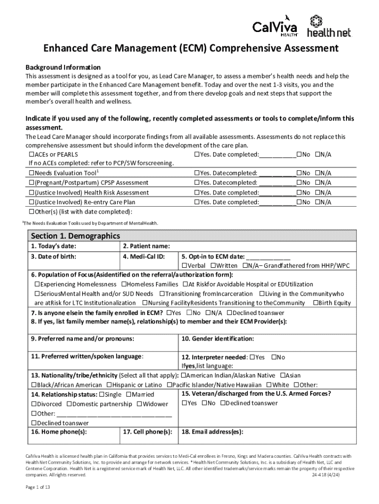 Enhanced Care Management (ECM) Comprehensive Assessment