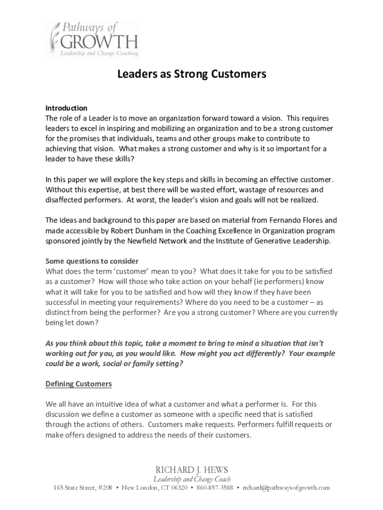 Leaders as Strong CustomersIntroductionThe role of a Leader is to move an organization forward toward a vision. This requires leaders to excel in inspiring and mobilizing an organization and to be a strong customer