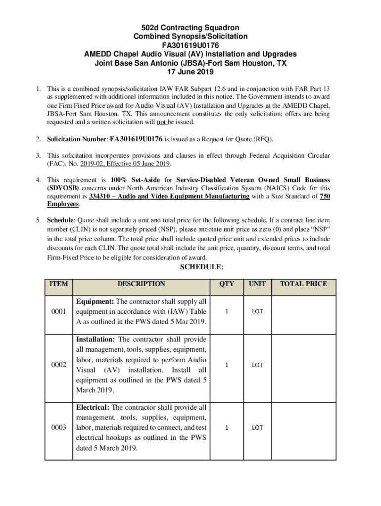 Get the free Performance Work Statements For JBSA Chapel AV ...