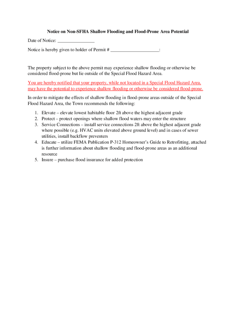 Get the free Notice on Non-SFHA Shallow Flooding and Flood-Prone ...