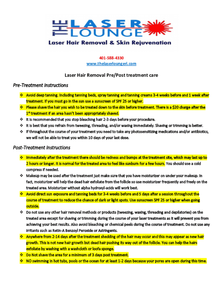 Get the free Pre and Post Treatment Instructions for laser Hair Removal