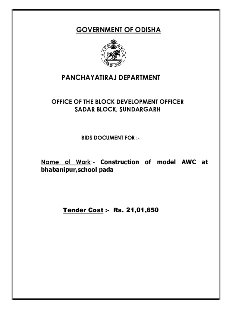 RADAR BLOCK, SUNDARGARHBIDS DOCUMENT FOR :Name of Work: Construction of model AWC at