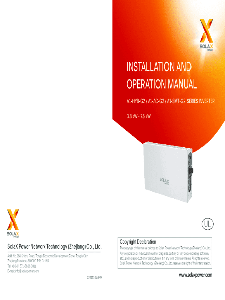 Individuals or businesses that install Solax Power A1-HYB-G2 series inverters as part of their energy system are required to file the related documentation.