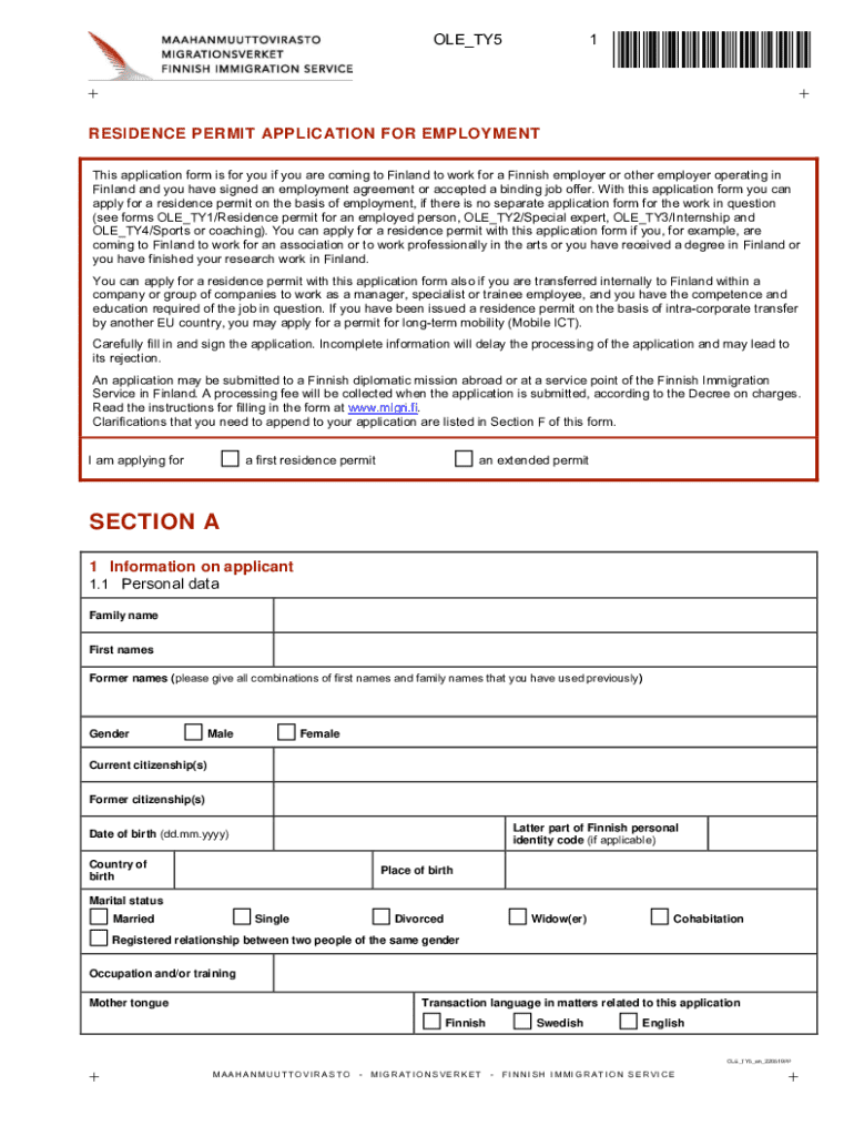 OLE_TY51+*1155501*+RESIDENCE PERMIT APPLICATION FOR EMPLOYMENT