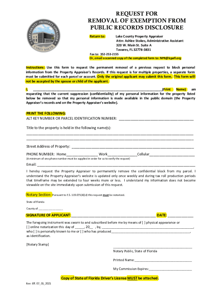 Required information typically includes the individual's name, contact information, details of the record being requested for removal, and any relevant case numbers.