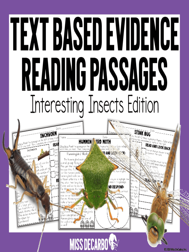 Text Based Evidence Reading Passages Interesting Insects Edition 2016 2017 Miss DeCarbo, Inc.Dear Teachers, This pack includes 20 text based evidence passages with an insect theme for your students!