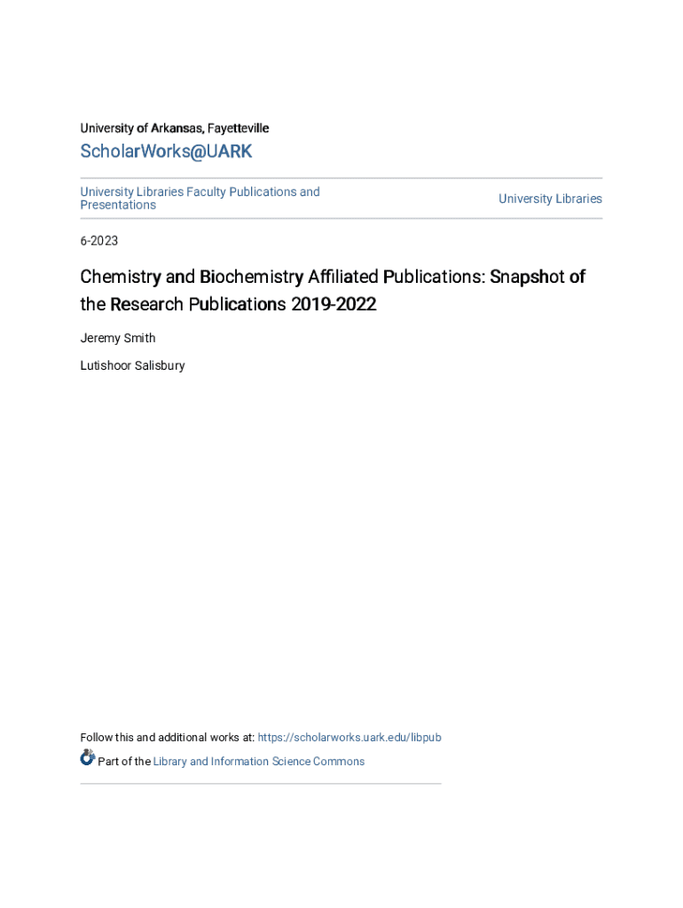 PresentationsUniversity Libraries62023Chemistry and Biochemistry Affiliated Publications: Snapshot