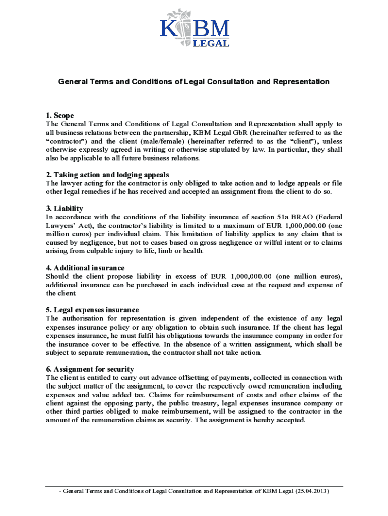 General Terms and Conditions of Legal Consultation and Representation1. Scope The General Terms and Conditions of Legal Consultation and Representation shall apply to all business relations between