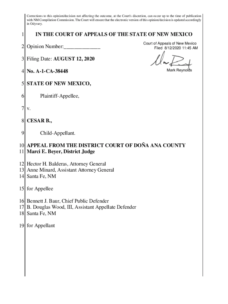Corrections to this opinion/decision not affecting the outcome, at the Court\'s discretion, can occur up to the time of publication with NM Compilation Commission. The Court will ensure that the electronic