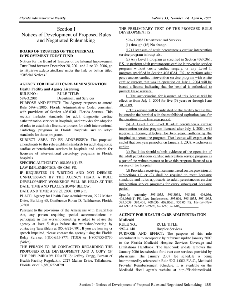 Florida Administrative WeeklyVolume 33, Number 14, April 6, 2007Section I Notices of Development of Proposed Rules and Negotiated Rulemaking BOARD OF TRUSTEES OF THE INTERNAL IMPROVEMENT TRUST FUND
