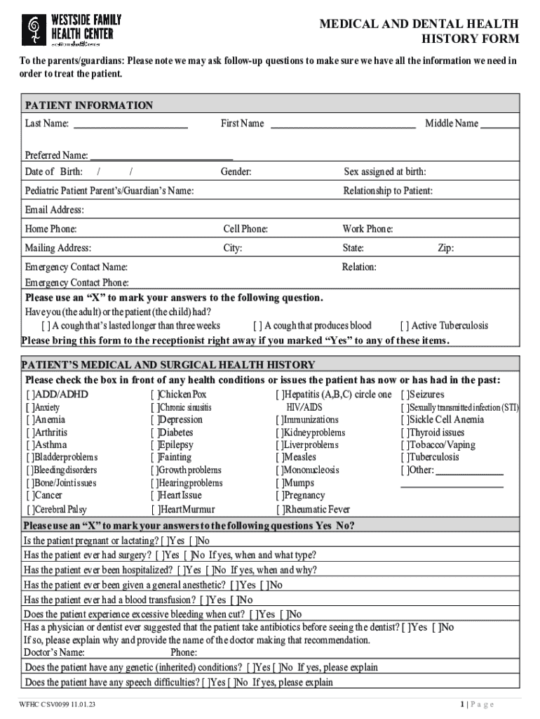 Get the free MEDICAL AND DENTAL HEALTH HISTORY FORM - Westside ...