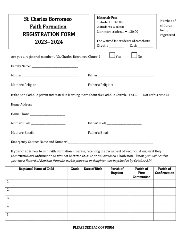 Get the free Bulletins & Calendar - St. Charles Borromeo Church