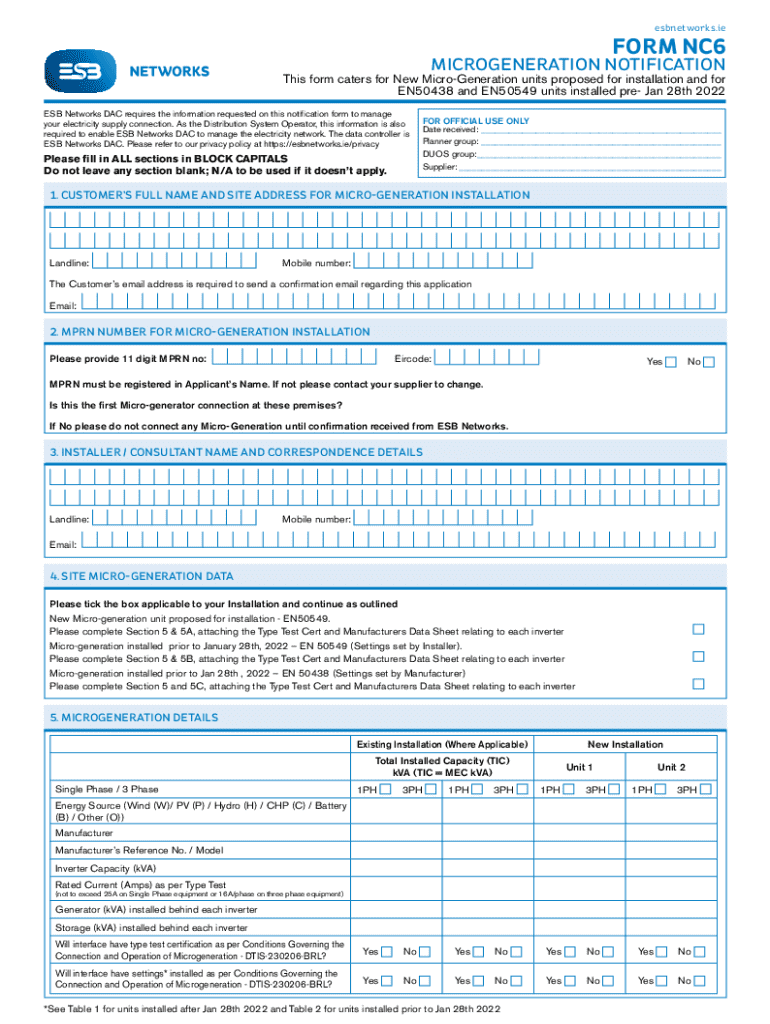 Subnetworks.reform NC6MICROGENERATION Notifications form caters for New MicroGeneration units proposed for installation and for