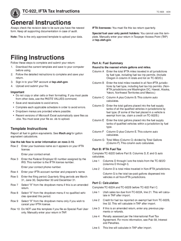 TC922, IFTA Tax InstructionsTC922i4/24General Instructions
