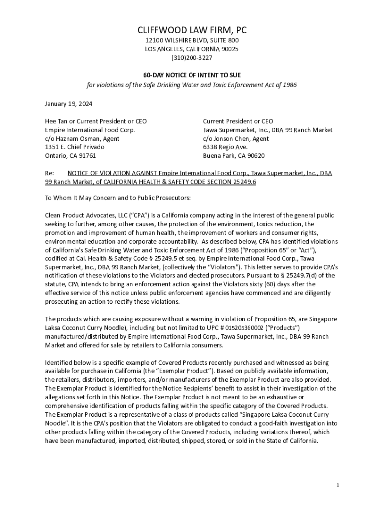 60DAY NOTICE OF INTENT TO SUE