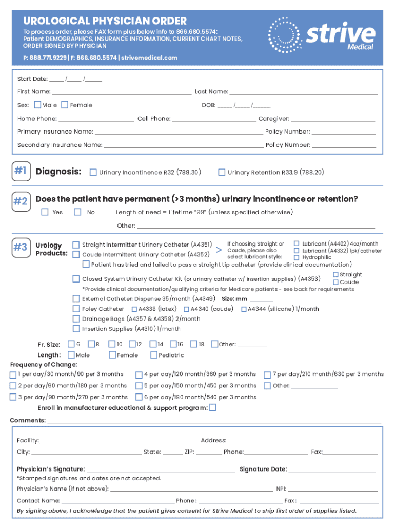 UROLOGICAL PHYSICIAN Order process order, please FAX form plus below info to 866.680.5574:
