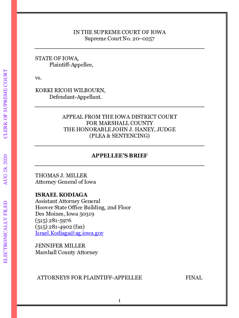 IN THE SUPREME COURT OF IOWA Supreme Court No. 200257ELECTRONICALLY FILEDAUG 28, 2020CLERK OF SUPREME COURTSTATE OF IOWA, PlaintiffAppellee, vs. KORKI RICOH WILBOURN, DefendantAppellant. APPEAL FROM