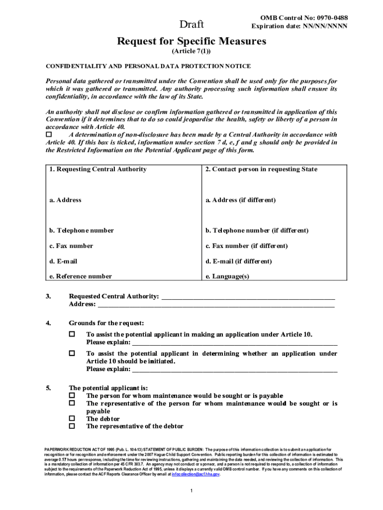 To fill out the Hague Child Support Convention, individuals must complete the prescribed forms provided by their country's designated authority. This involves providing personal information, details about the child, and the support obligations, among other necessary data.