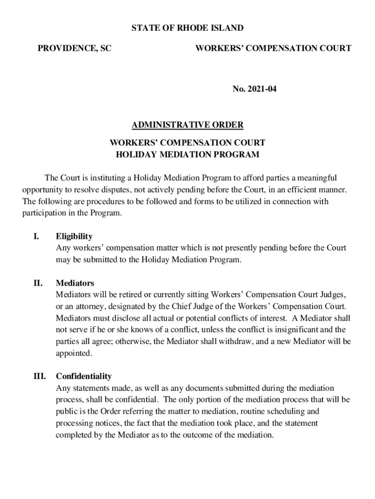 PROVIDENCE, WORKERS COMPENSATION COURT No. 202104ADMINISTRATIVE ORDER