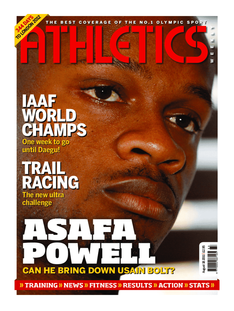 TO 34 LO 4 ND DA ON YS 20 12IAAF WORLD CHAMPS One week to go until Daegu!TRAIL RACINGASAFA POWELLCAN HE BRING DOWN USAIN BOLT?August 18 2011 | 2.95The new ultra challenge TRAINING NEWS FITNESS RESULTS