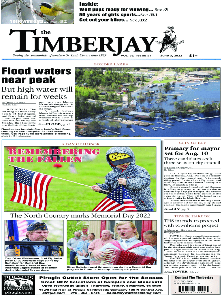 Inside: Wolf pups ready for viewing... See /3 50 years of girls sports...See /B1 Get out your bikes... See /B2Yellowthroats... See /B2TIMBERJAY theServing the communities of northern St. Louis County