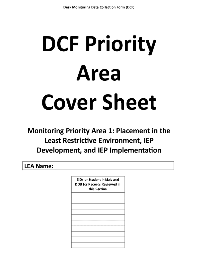 Desk Monitoring Data Collection Form (DCF)OSE Monitoring Data Collection Form How to Complete the DCF 1. Complete one entry for each OSE or LEA selected student record. 2. All sections of the DCF