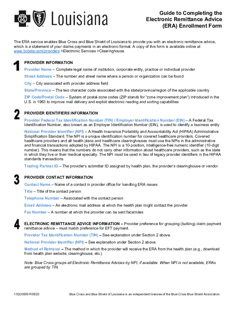 The ERA service enables Blue Cross and Blue Shield of Louisiana to provide you with an electronic remittance advice,