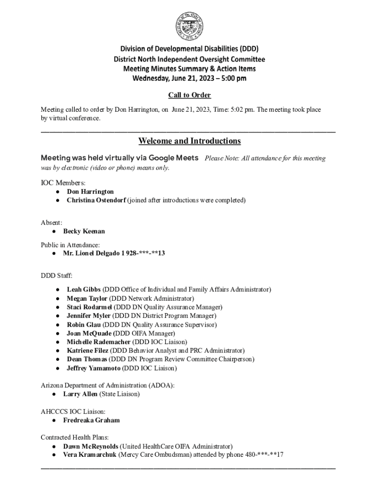 Meeting called to order by Don Harrington, on June 21, 2023, Time: 5:02 pm. The meeting took place