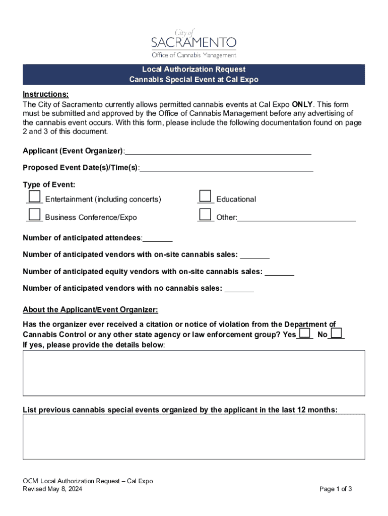 The City of Sacramento currently allows permitted cannabis events at Cal Expo ONLY. This form