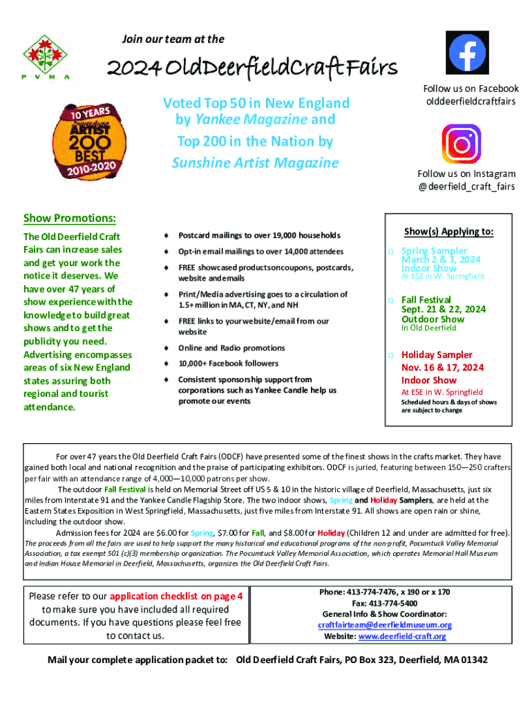 Join our team at the2024 OldDeerfieldCraft Fairs