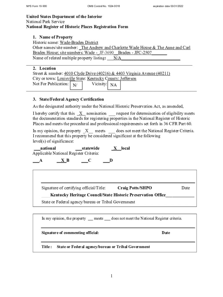 NPS Form 10900OMB Control No. 10240018expiration date 03/31/2022United States Department of the Interior
