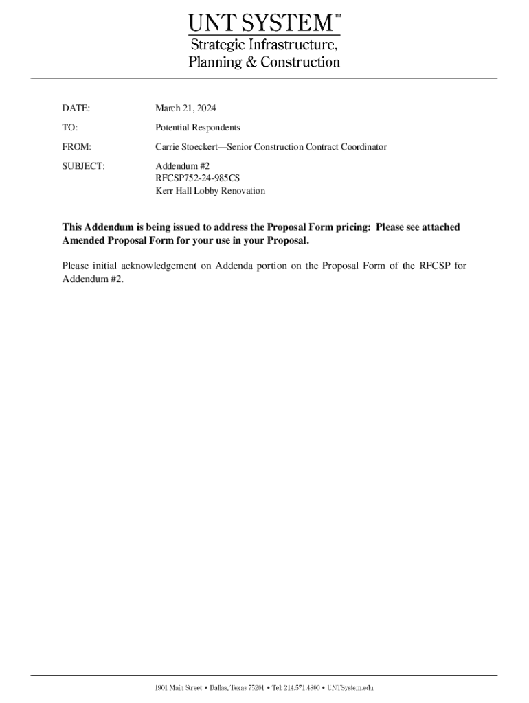 DATE:March 21, 2024TO:Potential RespondentsFROM:Carrie StoeckertSenior Construction Contract CoordinatorSUBJECT:Addendum #2