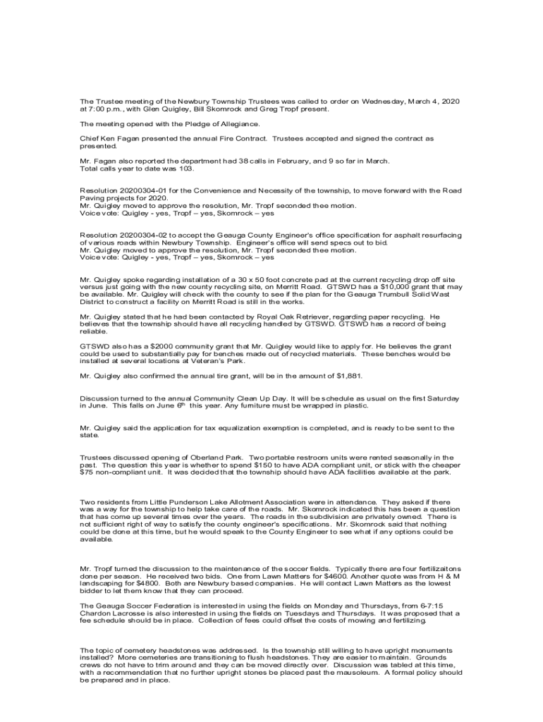 Get the free Newbury Township Trustees Get Answers, Plan to Pursue ...