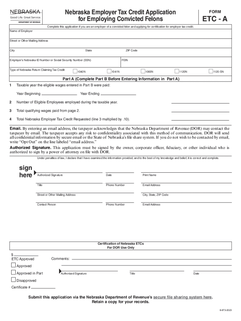 Employers in Nebraska who have hired qualifying employees and wish to claim the tax credit are required to file Nebraska employer tax credit.