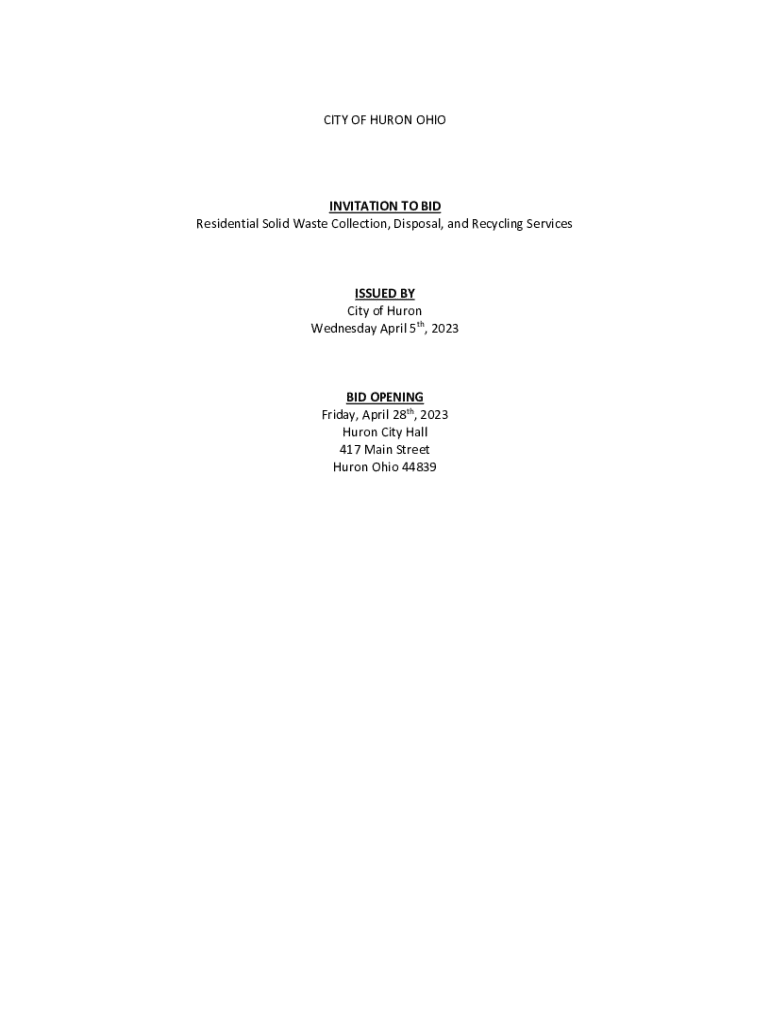 Get the free CITY OF HURON OHIO INVITATION TO BID Residential Solid Waste ...