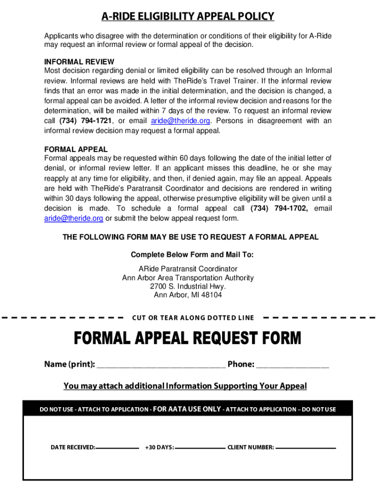 ASIDE ELIGIBILITY APPEAL POLICY