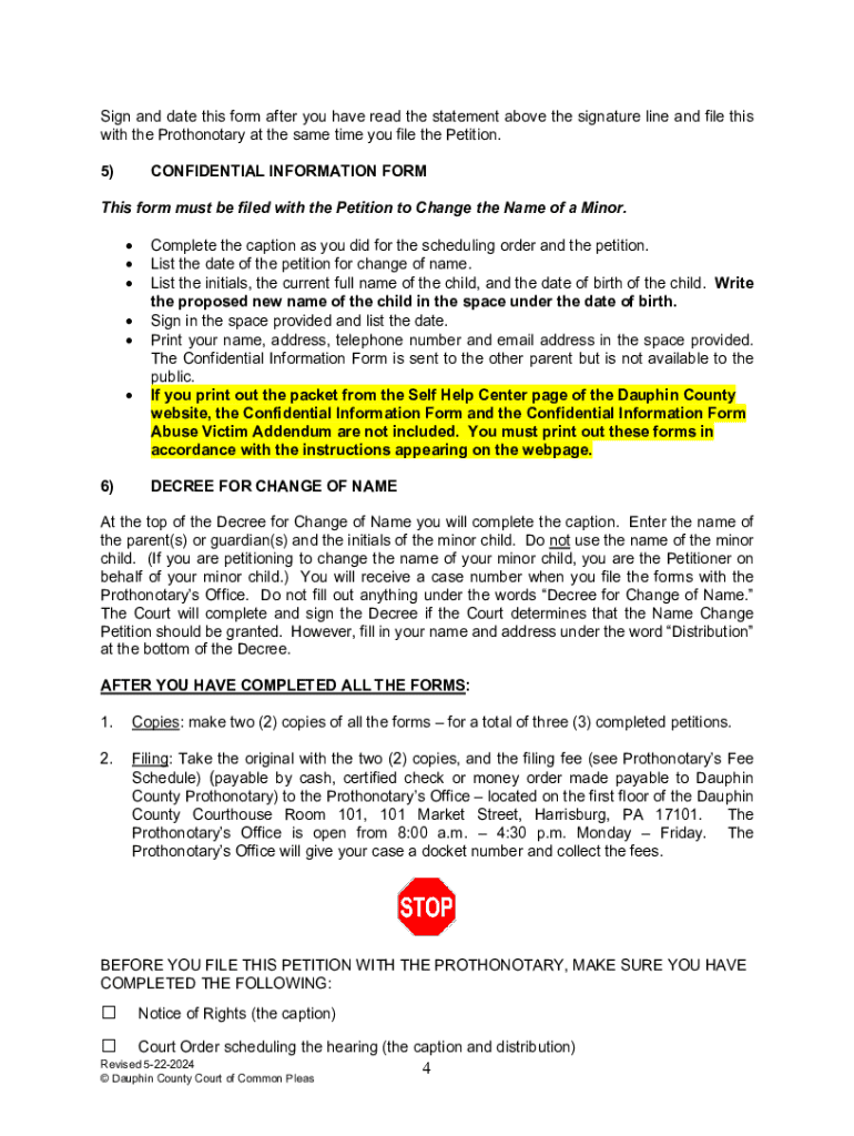 To fill out a name change petition, the individual must complete specific legal forms that typically require personal information, the desired new name, and the reason for the name change.