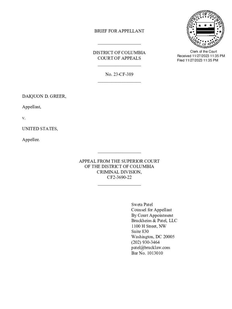 Get the free BRIEF FOR APPELLANT DISTRICT OF COLUMBIA COURT OF ...