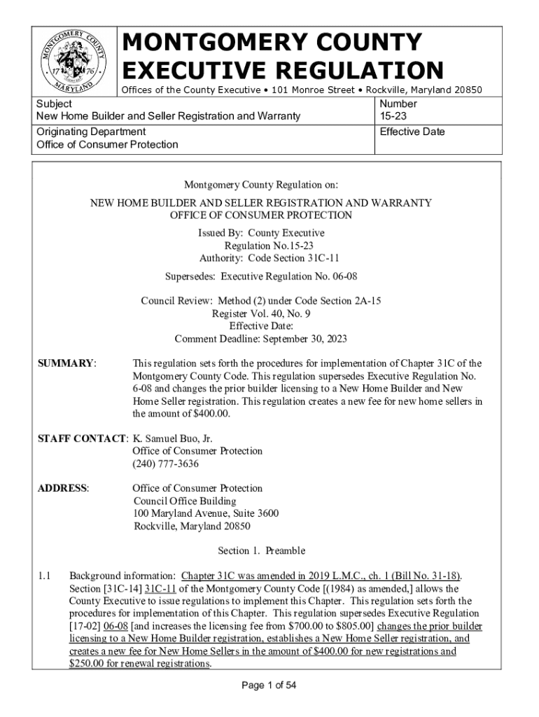 EXECUTIVE REGULATIONOffices of the County Executive 101 Monroe Street Rockville, Maryland 20850Subject
