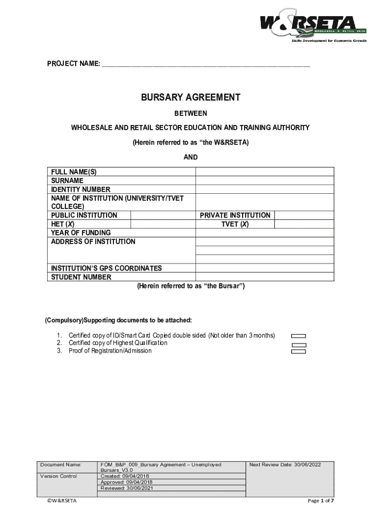 Get the free Bursary Agreement (Employed Learners)