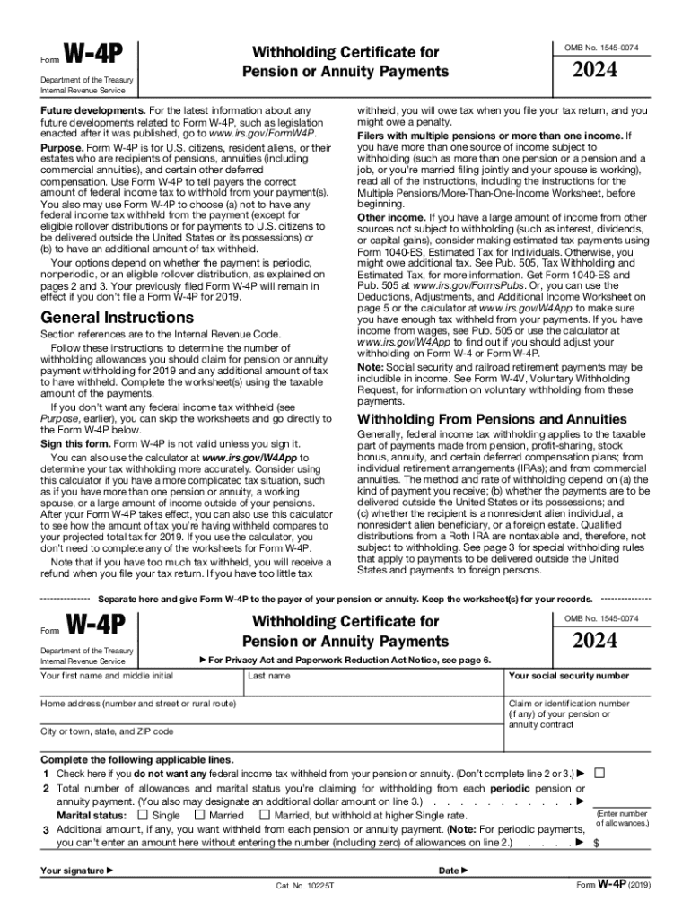 FormW4PWithholding Certificate for Pension or Annuity PaymentsDepartment of the Treasury Internal Revenue ServiceFuture developments. For the latest information about any future developments related