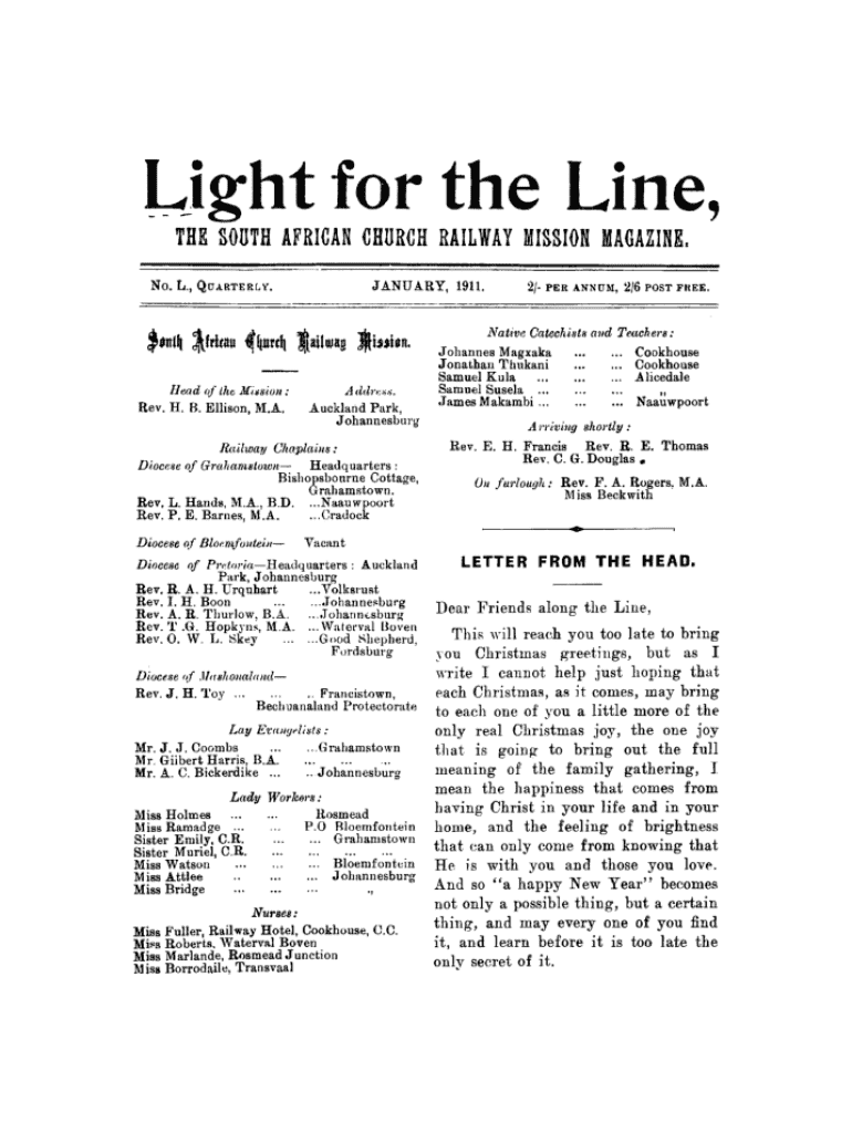 THE SOUTH AFRICAN CHURCH RAILWAY MISSION MAGAZINE.