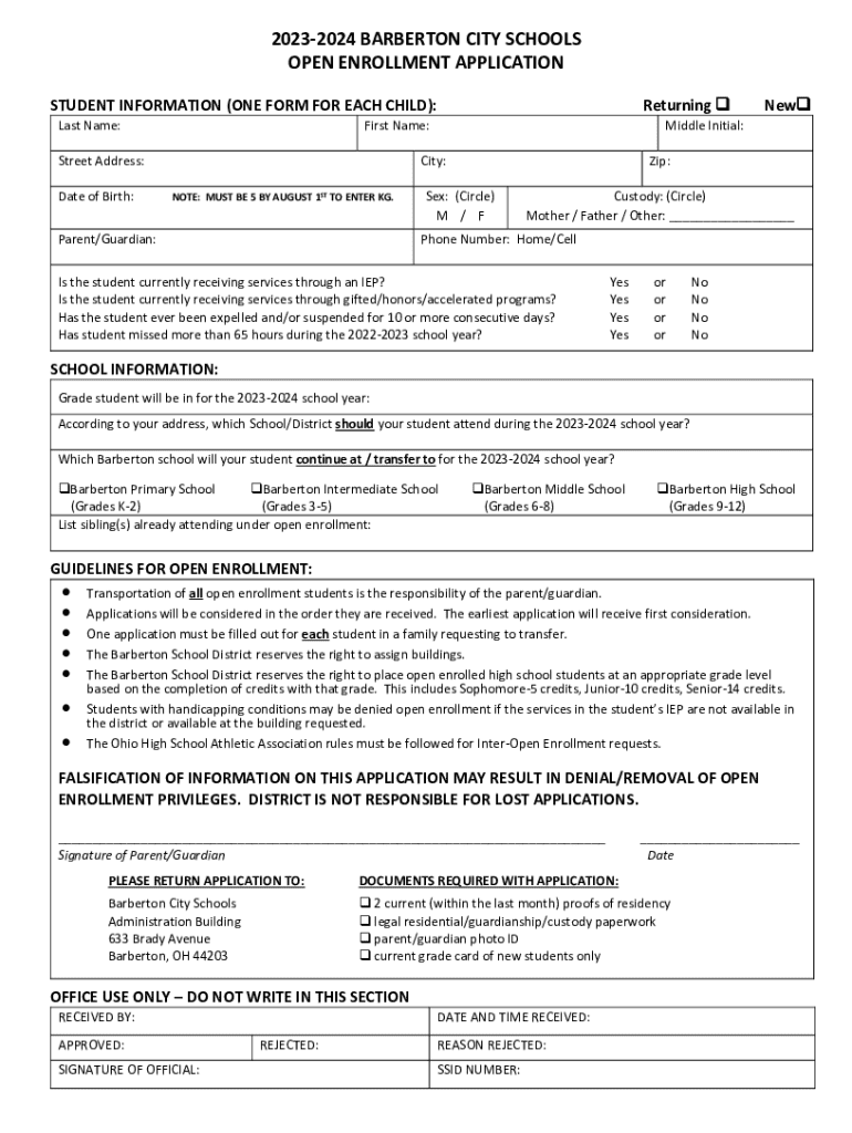 OPEN ENROLLMENT APPLICATION