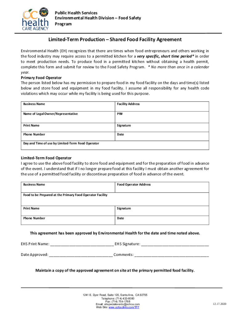 Get the free Limited-Term Production Shared Food Facility Agreement