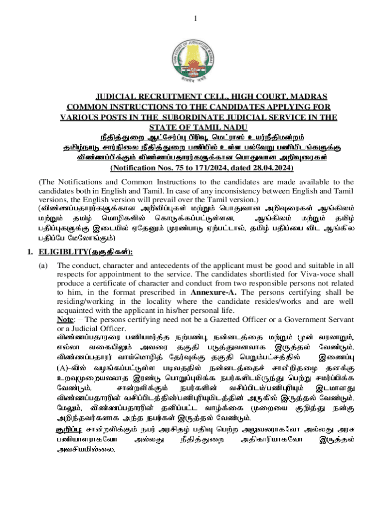 1JUDICIAL RECRUITMENT CELL, HIGH COURT, MADRAS