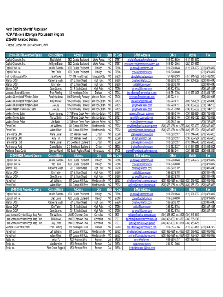 Get the free North Carolina Sheriffs' Association NCSA Vehicle & Motorcycle ...