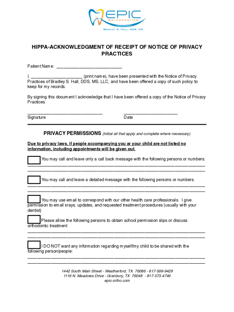 HIPPAACKNOWLEDGMENT OF RECEIPT OF NOTICE OF PRIVACY