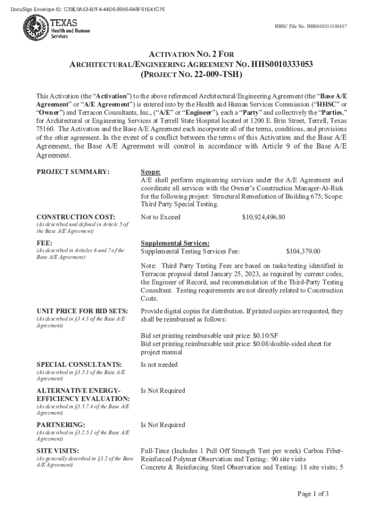 HHSC File No. HHS001033300107ACTIVATION NO. 2 FOR