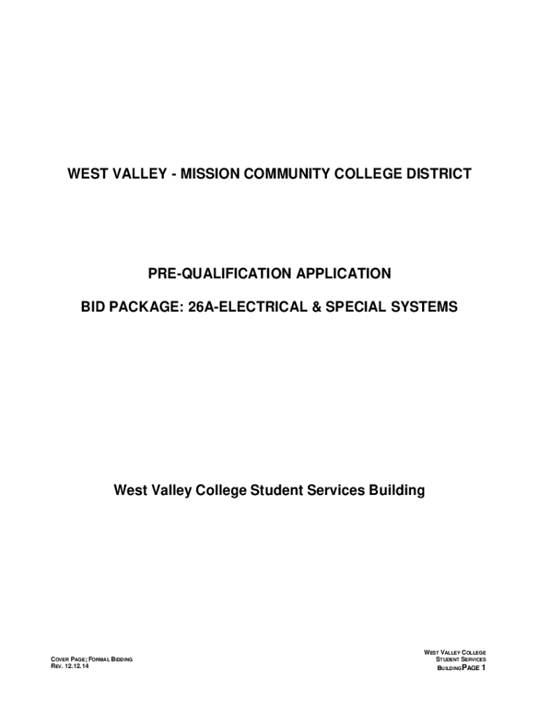 WEST VALLEY MISSION COMMUNITY COLLEGE DISTRICTPREQUALIFICATION APPLICATION
