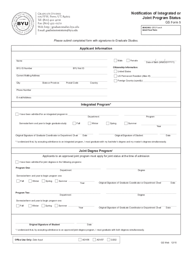 Get the free Notification of Integrated or Joint Program Status GS Form 5